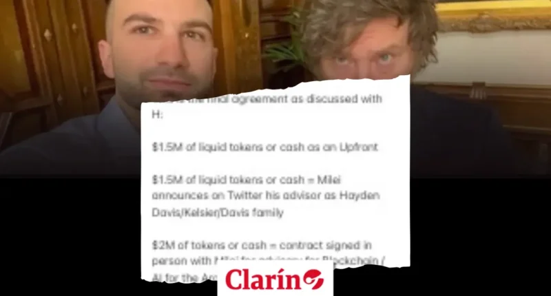 Novos documentos revelados pelo jornal argentino Clarín jogam luz sobre um suposto acordo financeiro de US$ 5 milhões relacionado ao lançamento da criptomoeda $LIBRA e ao apoio público do presidente da Argentina, Javier Milei. As informações surgem a partir da perícia no celular de um lobista, que teria atuado como intermediário em negociações entre o governo argentino e um empresário do ramo de criptomoedas.